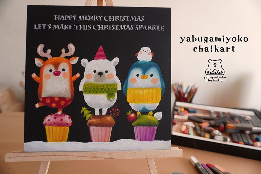 チョークアート通信講座キット「クリスマストリオ」 難易度★★☆