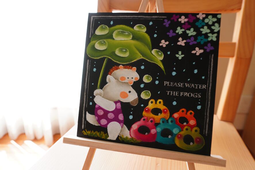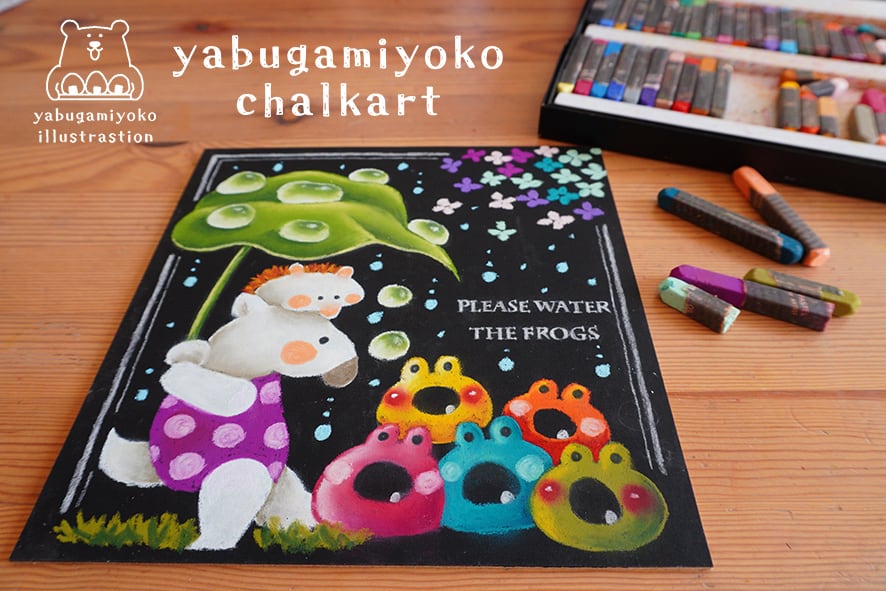 チョークアート通信講座キット「雨とカエル」 難易度★★